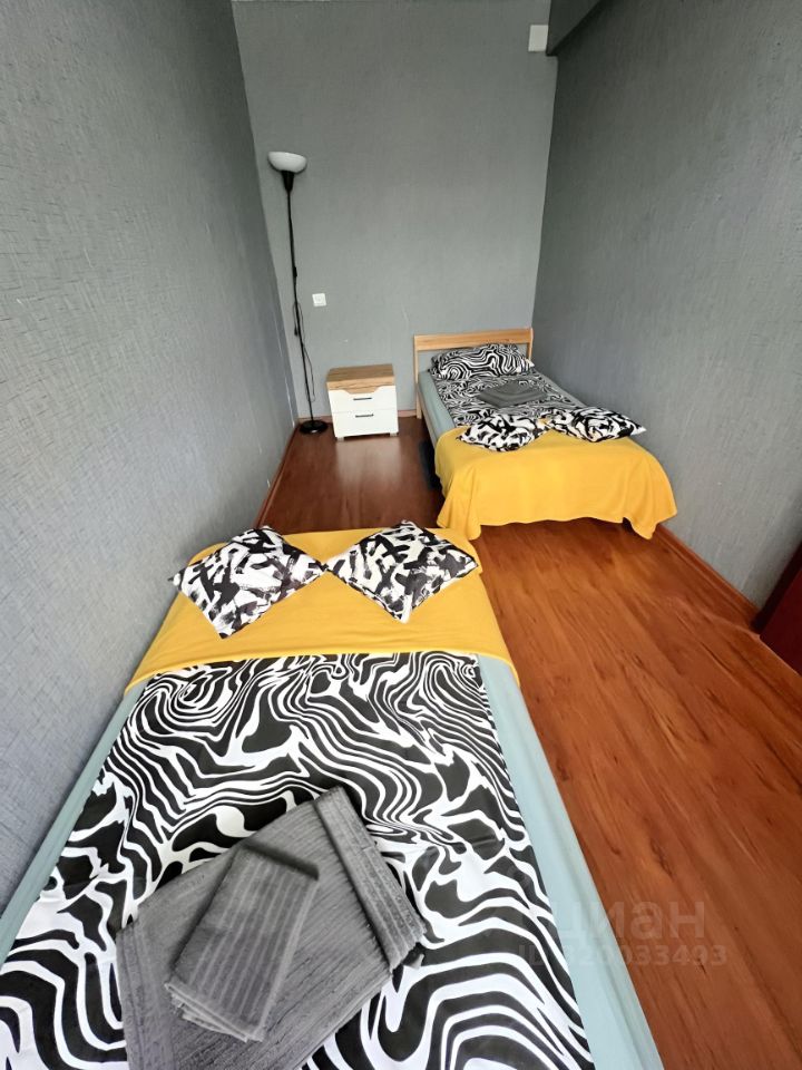 В спальне располагаются две односпальные кровати (по желанию их можно поставить рядом), в гостиной раскладывающийся двуспальный диван. Имеется дополнительное спальное место - раскладушка (+1000 руб.)