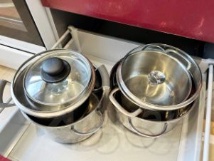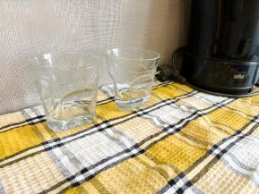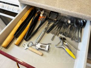 На кухне: чай, сахар, соль, посуда, вся необходимая техника для приготовления и хранения пищи.