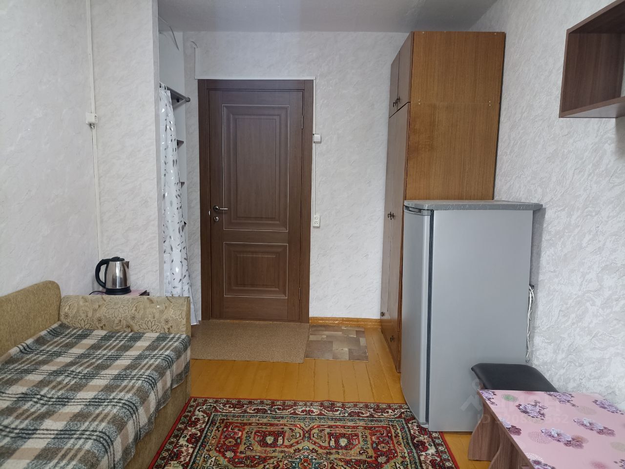 Комната со свежим ремонтом. Имеется все необходимое для проживания: холодильник, телевизор, диван, кресло, два шкафа, две тумбы, журнальный столик, табурет. В наличии посуда.
