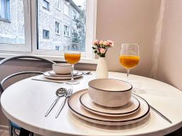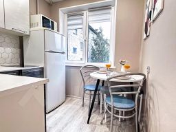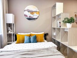 В распоряжении гостей 2 спальных места для 4 человек: двуспальная кровать 140200 с ортопедическим матрасом и диван-кровать 130200. Кухня оснащена микроволновой печью, варочной панелью, чайником, кухонными принадлежностями и посудой. В квартире есть скоростной WiFi, стиральная машина, фен, утюг, сушилка, гладильная доска, средства гигиены. Предоставляются постельное бельё и полотенца для каждого гостя, шампунь/гель и одноразовые принадлежности.