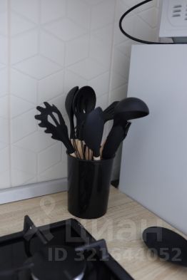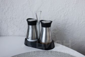Кухня полностью укомплектована — есть газовая панель, микроволновка, холодильник, вся необходимая посуда и даже турка для ароматного утреннего кофе.