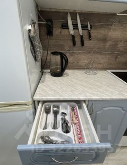 - Кухонный гарнитур с необходимой техникой и аксессуарами (электрический чайник, плита, набор столовых принадлежностей, микроволновая печь, холодильник);