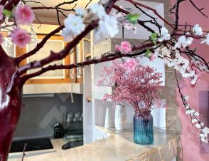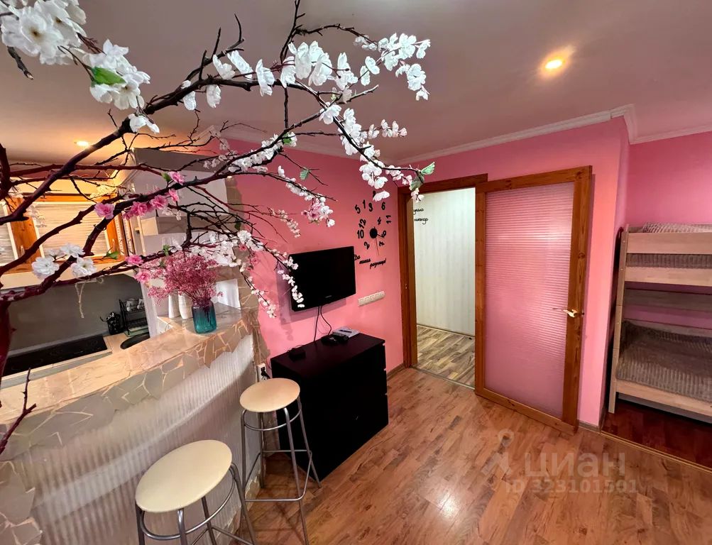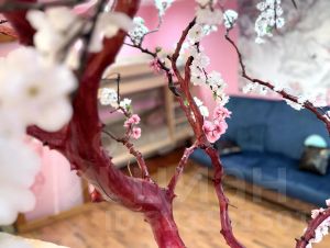Уютная квартира с интересным дизайном, в квартире декорация из настоящего дерева, имитирующая сакуру в Хибинах.