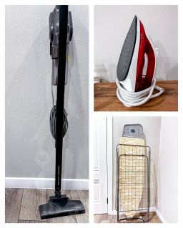 (стиральная машина, фен, утюг, пылесос, сушилка для белья, гладильная доска, средства гигиены).