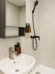 На территории комплекса расположены 7 коттеджей, достаточно удаленных друг от друга. Каждый дом оборудован всем необходимым для комфортного проживания. Коттеджи вмещают до 4-х гостей и располагают просторной кухней-гостиной и спальней (двуспальная кровать и диван). Также гости могут остановиться в уютных апартаментах в модульном отеле с чудесным видом на лес и горы, которые вмещают до 2-х гостей. Во всех домах есть мини-холодильник, плита, чайник, микроволновая печь, смарт-ТВ, посуда и столовые приборы. Также есть санузел с душем, феном, теплыми полами, шторы блэкаут и Wi-Fi. К услугам гостей чай/кофе, постельное белье, полотенца, туалетные принадлежности, тапочки, халаты и парковка.