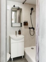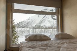 Двухкомнатный номер, площадью 25м2 с отдельной спальней и гостиной. Из панорамного окна в спальне открывается вид на горы.