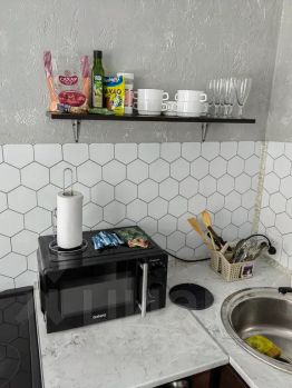 Есть все необходимое для проживания (телевизор, стир. машинка, фен, микроволновка, кофемашина,холодильник, суш. для белья, сушилка для обуви, утюг, гладильная доска)