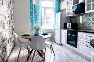 • Оборудованная кухня (микроволновая печь, варочная панель, чайник, кухонные принадлежности, посуда)