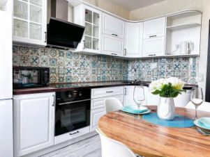 Чистое хлопковое белье, комплект полотенец для каждого гостя (шампунь/гель/одноразовая зубная щетка/ одноразовые тапочки). 3 спальных места: Двуспальная кровать (160*200) с ортопедическим матрасом; двуспальный диван-кровать (160*200), односпальный диван-кровать (120*200). Скоростной Wi-Fi, необходимая бытовая техника