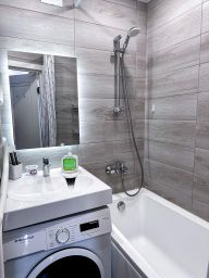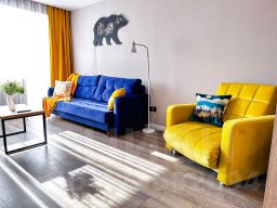 Чистое хлопковое белье, комплект полотенец для каждого гостя (шампунь/гель/одноразовая зубная щетка/ одноразовые тапочки). 3 спальных места: Двуспальная кровать (140*200) с ортопедическим матрасом; двуспальный диван-кровать (140*200), кресло-кровать (70*190). Оборудованная кухня (микроволновая печь, посудомоечная машина, варочная панель, чайник, кухонные принадлежности, посуда. Скоростной Wi-Fi