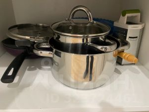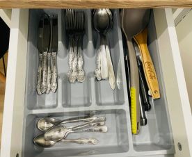 Кухня: холодильник, плита на 2 конфорки, электрический чайник, микроволновка, посуда для приготовления и принятия пиши, приборы, мелочи для хозяйственных нужд.