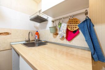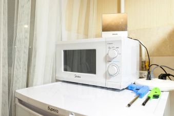Кухня оснащена всем необходимым - бытовая техника и посуда для готовки.