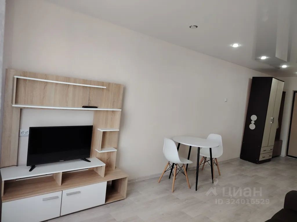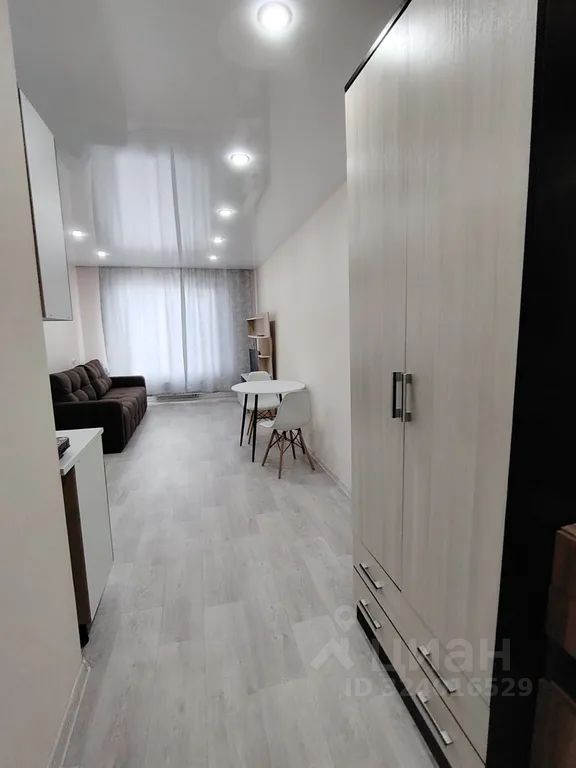 Студия, расположенная на 8 этаже 9-этажного дома. Окна смотрят на самый центр, красивый вид из окна, особенно в темное время суток. В комнате вместительный, удобный, двуспальный диван!
