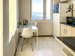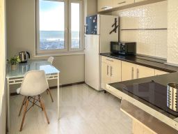 Квартира с видом на центр Мурманска и Кольский залив: город и небо как на ладони, особенно удачливые даже могут увидеть сияние из окна. Дом расположен рядом с ТЦ, продуктовыми магазинами, кинотеатром "Мурманск", развитым транспортным узлом (с легкостью можно добраться до любой точки города).