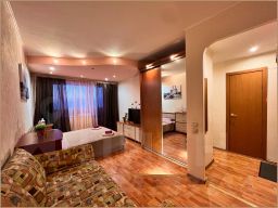 Однокомнатная квартира c видом на город. Спальных мест 3, двуспальная кровать и диван.