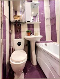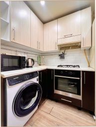 ? Все необходимое для комфортного проживания: Жк телевизор, микроволновая печь, плита, чайник, холодильник, необходимая посуда, стиральная машина, водонагреватель, утюг, гладильная доска, фен.