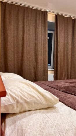 Небольшая, но тёплая и продуманная. Двуспальная кровать, Smart-TV, быстрый Wi-Fi, мини-кухня, всё под рукой. Санузел отдельный. Постельное бельё, полотенца, мыло, шампунь, гель, всё уже ждёт гостей. Заехали и живёте, ничего лишнего с собой не нужно. Заселение полностью бесконтактное, максимально удобно.