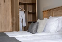 Двухместный номер с кроватями-трансформерами 90х200, которые могут быть объединены матрасом-топпером в спальное место 180х200. А также есть возможность установки доп. места. В номер прикроватные тумбы, шкаф с мини-сейфом, вешалка для верхней одежды, багажная полка, стол, стул, мини-холодильник, чайная станция, халат, тапки, фен, набор косметики.