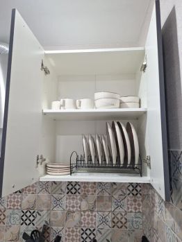 На кухне: свч, эл. чайник, посуда для приготовления и приема пищи, холодильник, капсульная кофемашина, тостер.