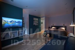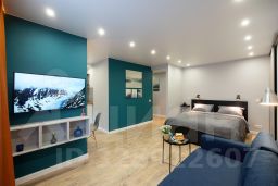 Апартаменты студия для 4 гостей. Спальные места: диван и двуспальная кровать.