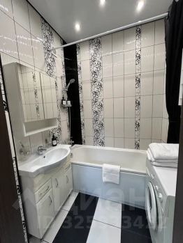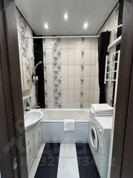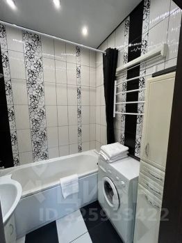 Ванная комната оборудована полноценной ванной с душевой стойкой, раковиной и специальной мебелью, также в ванной расположена стиральная машина и настенная сушилка для белья, кроме того, гостям предоставляются средства гигиены, полотенца, фен.