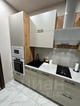 В кухне пол из керамогранита с подогревом.