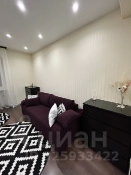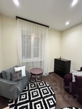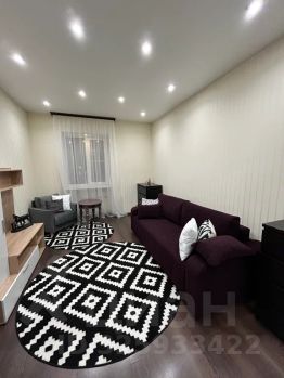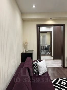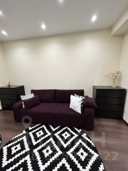 Стильная и просторная зона гостиной, в которой расположен большой раскладной диван, комоды, удобное кресло со столиком и большой телевизор, мягкие напольные ковры и декор создают уютную и комфортную атмосферу.