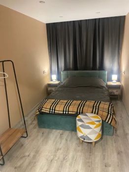 укомплектованная кухня, 2-х спальная кровать с ортопедическим матрацем, большой 2-х спальный диван - кровать, большой телевизор, WI-FI, парковка у дома, шторы BlackOUT, тихие соседи.