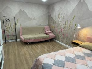 В комнате расположена двуспальная кровать (140х200) и раскладной двуспальный диван.