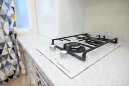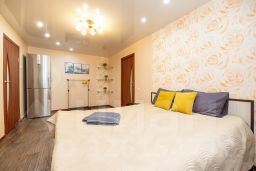 В квартире можно расположиться на двухспальной кровати при бронировании на 1 или 2 гостей. При бронировании на 3-4 гостей открывается вторая комната с двухспальной кроватью. Гостям мы предоставляем постельное белье и полотенца после профессиональной прачечной: всегда свежие и глаженые. Высокоскоростной Wi-Fi от Ростелеком и телевизор с кабельным телевидением (Wink, YоuТubе) позволяют гостям как работать, так и отдыхать. Посуда для приготовления пищи, столовый и чайный наборы, а также необходимые мелочи (соль, сахар, масло, гигиенические средства и т.д.) позволят чувствовать себя как дома.