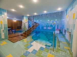 На первом этаже расположен бассейн с лаунж-зоной, душевые и сауна, раздевалка с с/у, подсобные помещения со стиральной и сушильной машинками, оборудованная комната отдыха с телевизором. Над бассейном имеется видеопроектор.