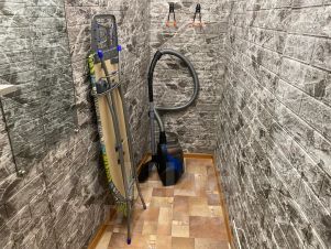 Также есть кладовая-гардеробная, пылесос, утюг и гладильная доска.