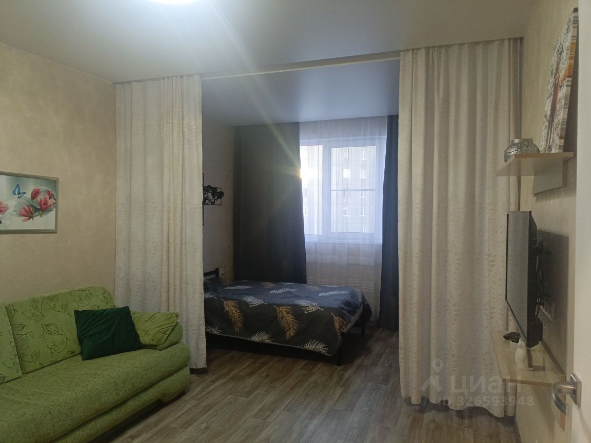 Комната зонирована на спальню и гостиную, есть вместительная гардеробная.