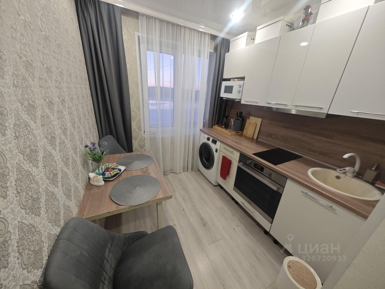 Квартира готова к заселению. В комнате и на кухне есть вся необходимая мебель.В комнате диван и стол раскладываются, на кухне установлена современная техника: холодильник, телевизор и стиральная машина, интернет. Санузел совмещённый, с ванной.