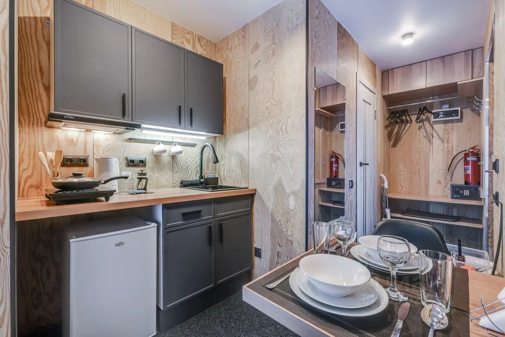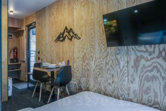 Каждый номер оснащен одной большой двуспальной кроватью. В номерах большие панорамные окна с видом на город и горы. Каждый номер оснащен индивидуальным санузлом с душем, телевизором с цифровыми каналами, wi-fi, мини-кухня с холодильником, плиткой чайником и необходимым набором посуды для приготовления и приема пищи, обеденной зоной и системой для хранения вещей. При заселении гостям предоставляется постельное бельё, комплекты полотенец, тапочки и туалетно-гигиенические принадлежности.