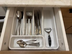 — посуда + вся необходимая кухонная утварь;
