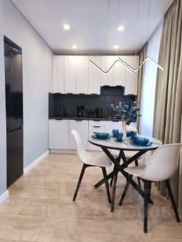 - Современная кухня: газовая плита, холодильник, чайник, микроволновая печь, посудомоечная машина с таблетками, столовые приборы, посуда для хранения и приготовления пищи, чай, кофе, соль, сахар, вкусняшки;