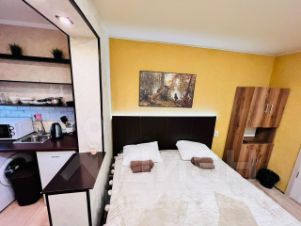 Гости могут разместиться в Апартаментах. В каждом номере кровать, телевизор, стол, шкаф, мини-кухня со всей не обходимой техникой и посудой, стиральная машина, а также собственная ванная комната с душевой кабиной. По запросу предоставляется детская кроватка.