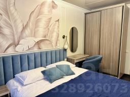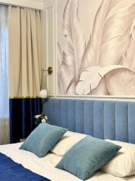 В номере: одна двуспальная кровать , стол, стулья, прикроватные тумбочки, бра, письменный стол, туалетный столик, шкаф-купе, сейф, центральное отопление, зеркало, светильник, набор полотенец, индивидуальные розетки, натуральное постельное белье из 100% хлопка, москитная сетка, вода в графине, стакан, Wi-Fi, цифровое телевидение, ЖК-телевизор.