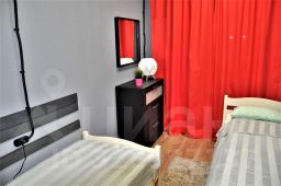 В номере: две односпальные кровати размера 90х200 с ортопедическими матрацами, smart TV, комод, зеркало, прикроватные лампы, стул, вешалка.