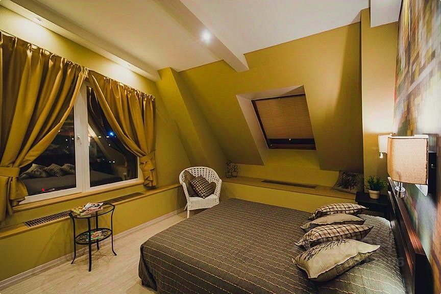 Спальня: двуспальная кровать, две прикроватные тумбочки, ЖК телевизор, бесплатный Wi-Fi, ванна + душевая кабина.