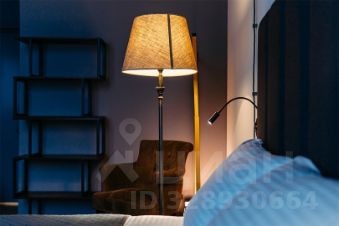 В номере имеется большая двухместная кровать с очаровательными ночником , стол, кресло, полочки для личных вещей