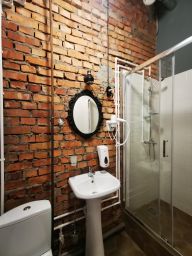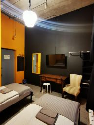 Оригинальный номер в стиле лофт с двумя раздельными кроватями. В номере большое окно, удобный матрас, кронштейн с вешалками для одежды, телевизор с плоским экраном и бесплатный Wi-Fi.