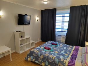Двухкомнатная квартира с раздельными комнатами, балконом, лифтом и сауной. Из окна открывается вид на морской порт, кольский залив и сопки. В пешей доступности ряд сетевых магазинов и остановка общественного транспорта.
