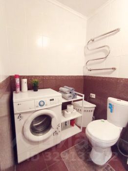 Сан узел с ванной и стиральной машиной.