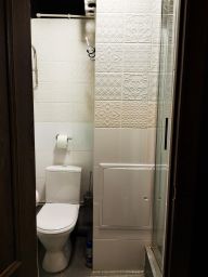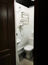 Собственная ванная комната (туалет и душевая кабина) оборудована феном и полотенцесушителем.