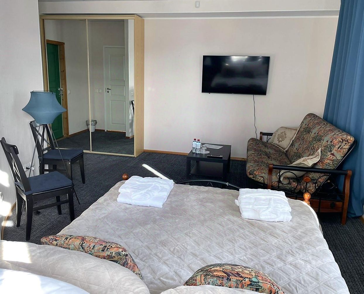Номер располагается на 3 этаже отеля. В номере имеется гардероб, диван, журнальный столик, телевизор. Ванная комната оборудована теплым полом, предоставляются халаты, тапочки, ванные принадлежности.