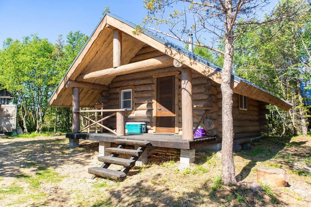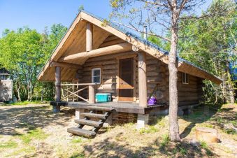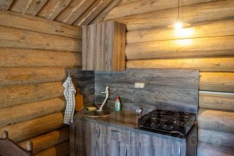 Бревенчатый дом с удобствами и верандой (максимум 4 человека: двуспальная кровать в изолированной комнате + 2 односпальных места в алькове).