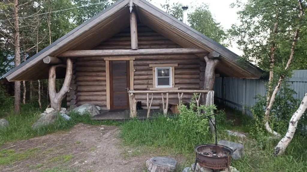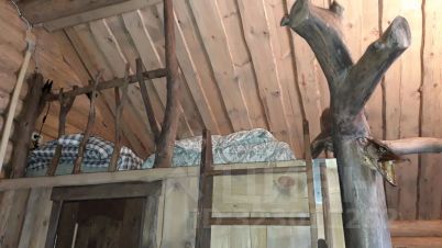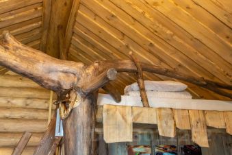 Бревенчатый дом с удобствами и верандой (максимум 4 человека: двуспальная кровать на первом уровне и 2 односпальных места в алькове).