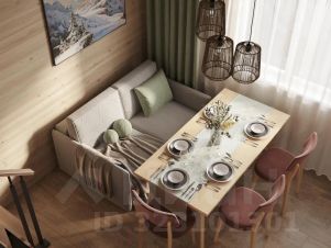 На первом этаже гостиная - столовая, где можно расположится всей компанией за общим столом.